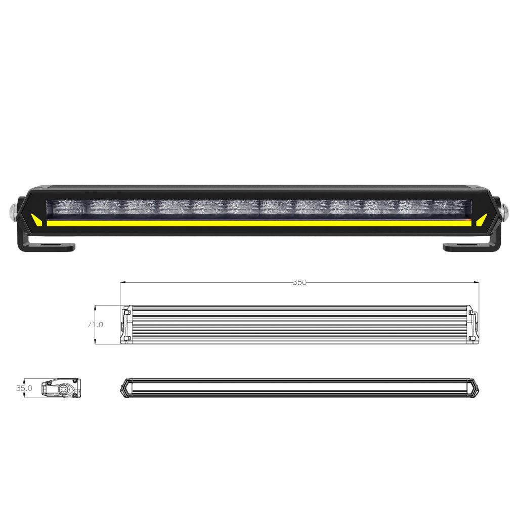 - Dimensions 350 mm x 71 mm x 35 mm